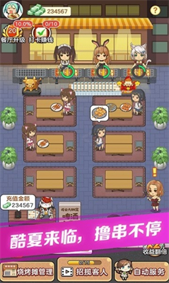 3、在游戏里玩起来很轻松。很多美食烧烤等着你去解锁,你的店会发展的很快。