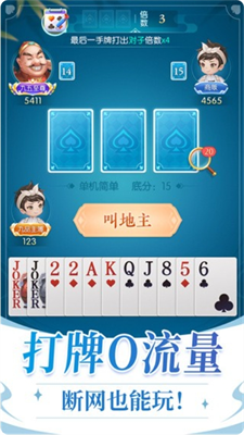 单机斗地主规则中的胜负判定是指任意一家出完牌后结束游戏,若是地主先出完牌则地主胜,否则另外两家胜。游戏无需联网即可畅玩,无需担心欢乐豆的存在,同时游戏也加入了不同难度的AI对战