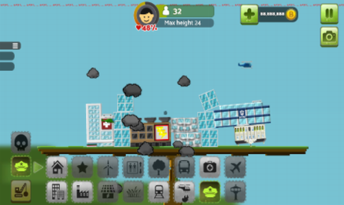 2、建造更多建筑,保持平台平衡,不坍塌。