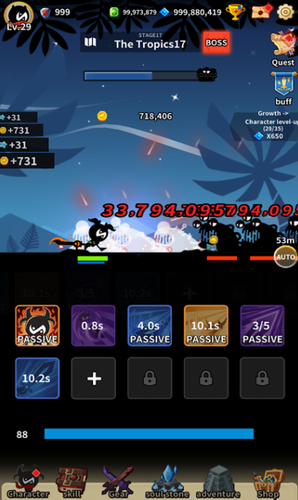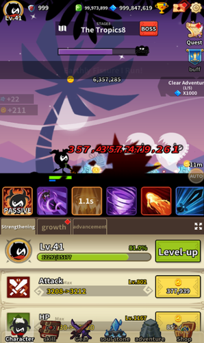 3、通过战斗能够获得更多的奖励,可以使用奖励不断的升级我们角色的战斗属性。