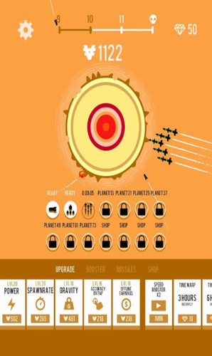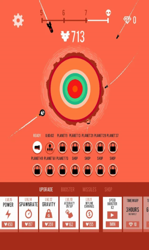 3、行星轰炸机游戏中的每个行星都有坚固的防御外层,你需要连绵不绝的攻击才能攻破它的防御。