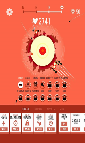 将行星摧毁后,你可以升级你的飞船和导弹向着其他星系进行攻击,还可以解锁全新的关卡。