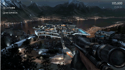 之后上面会有个警卫也透过玻璃去看那辆车。打玻璃打警卫为就会砸中另一个人,就可以完成连锁击杀。