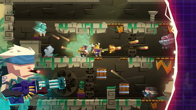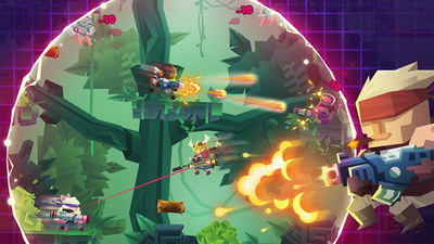 4、卡通方块2D横版风设计的动作射击类冒险闯关游戏。