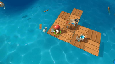 3、游戏中玩家需要操作角色离开木筏,拾取所需的物品,并建造相应的建造物,用于更好的生存。