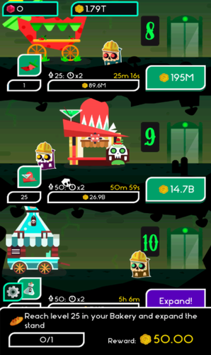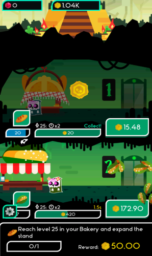 2、不断的进行点击,赚更多的钱来成为顶级大亨,升级食物摊位,学会更好的管理公司。