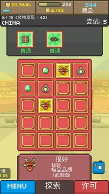要想丰富一家博物馆,首先要获得足够多的藏品。通过解锁探索地,能够获得这个国家的探索权。之后就可以随时对这个国家进行探索了,所谓探索其实就是进行一个小游戏,玩家们一定很熟悉这个游戏,就是一个记忆游戏。
