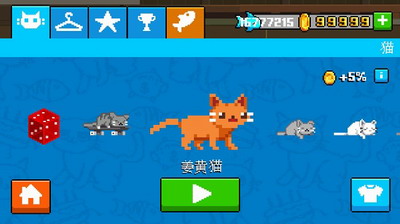 2、和其他跑酷游戏一样,猫咪也有许多皮肤和服饰。玩家可以通过收集金币和鱼来解锁新装饰。装饰数目繁多,够收集一会的了。