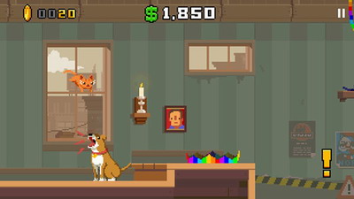1、玩家将扮演一只猫,通过跳跃破坏屋内的物品并躲避危险。操作难度中等,快感十足!轻松诙谐的BGM,配上满目狼藉的屋子,莫名的喜感。