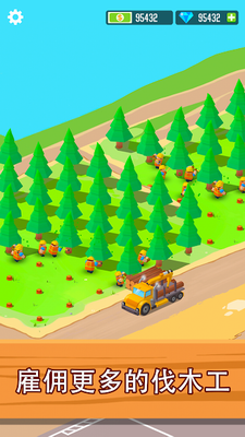 1、木材公司手游拥有小清新的画风设计,主要是以砍木头为主要玩法设计。