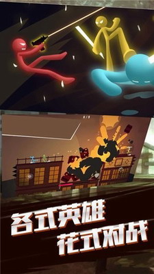 2、操作非常的简单,还有很多的模式和玩法可以选择,都是围绕着火柴人动作格斗。