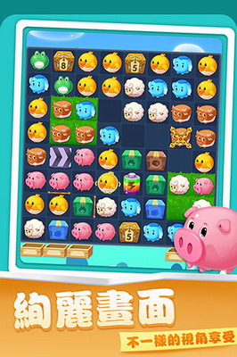2、轻松趣味的休闲游戏,在有限的空间里移动各种小动物,达到消除的目的。