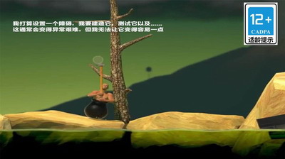 1、玩家控制一个坐在似乎是缸里的人,用一把榔头不断往上爬,操作极其简单。