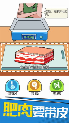 我切的贼溜破解版不用认证版是一款抖音上特别热门的休闲益智类软件。在游戏中,你将扮演一位小摊贩老板,自由地切割食材,切水果、切肉、切肥皂、切榴莲、切西瓜等,想切什么切什么,满足不同顾客的需求,但并不是一件容易的事情,你需要精准地掌控重量,这样才可以让顾客更加满意。玩家需要根据客户奇怪的需求进行肉的切割,合适才能满足需求并成功过关。可尝试不同切割方法,带来有趣的操作,也能通过反复尝试获得成长,玩法简单,画面干净,每个关卡都有不同的需求,提供新的乐趣和挑战。