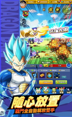 2.随心放置,战斗全自动解放双手,华丽大招扭转全局,满屏特效带来热血与情怀的双重暴击。