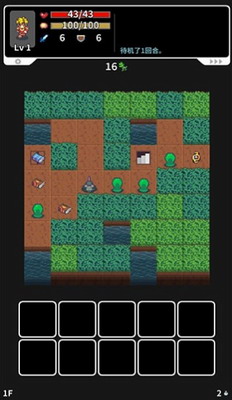 2、游戏玩法简单,玩家通过点击草丛,拾取各种出现的道具,打败怪物,找到走向下一层的通关之路,探索这个地下迷宫。