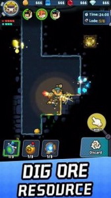 2、操作很简单,当玩家进入矿场时,只需要点击方向键控制角色的移动,然后点击场景中的土块即可进行挖掘操作。