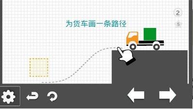 1、充满脑洞的休闲益智游戏,使用各种画图工具,为卡车画出一条路径。