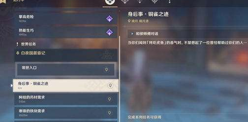 原神身后事铜雀之迹怎么触发?原神铜雀之迹是璃月港中的一个任务,当我们问道烤吃虎鱼的味道时,就会想起一位曾经帮助过我们的人。那么原神铜雀之迹怎么触发呢?不知道的小伙伴不用担心,今天小编为大家准备了一篇攻略,相信能让你们有所收获的,快一起来看看吧!