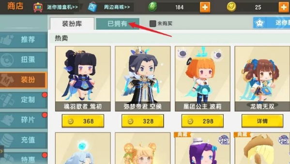 3、然后点击查看已拥有的皮肤(装扮)。