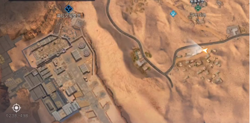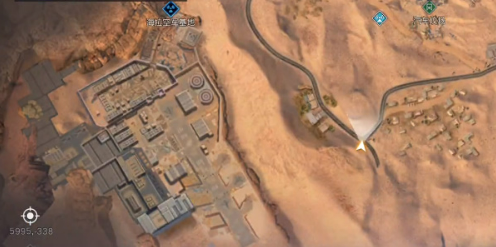 1、我们直接来到地图坐标【6238,-498】位置,然后可以看到金色沙漠欢迎你的广告牌。