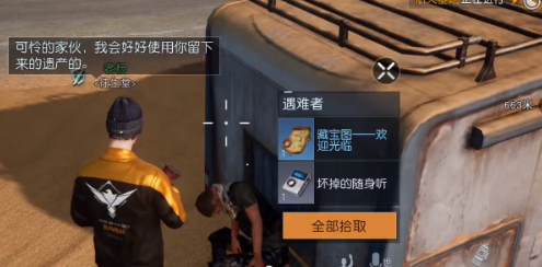 3、靠近遇难者以后,点击搜取就能获得【藏宝图——欢迎光临】。