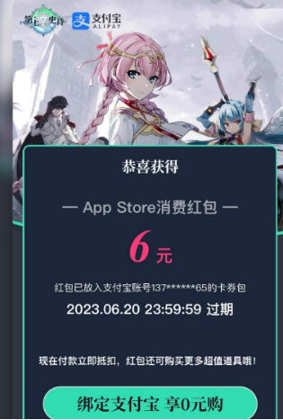 3、这个是跟支付宝一起的活动,领红包随机减,礼包0元起,最高是有六元的红包,只需要绑定支付宝就可以0元购了。