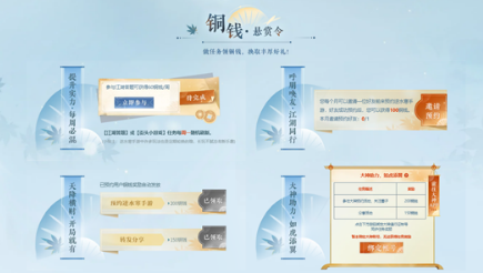 点击活动页面的混江湖游戏,完成小游戏即可获得铜钱。