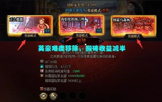 (2)所有基础白图的英豪模式全部删除,这也就意味着,如“柯涅恩山”“海博伦”这样的副本,最高就只能打普通级的噩梦难度,收益直接减半,也就是说,常规的基础白图已经不具备搬砖环境了。