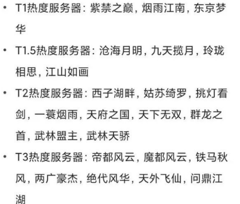 T1.5热度的话,就推荐九天揽月、江山如画、沧海月明、玲珑相思这几个服务器。