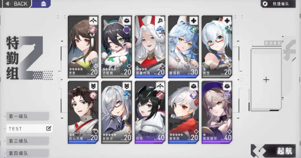 2、配队思路:每个队伍中可以配置10个角色,通常会按照2防护+2狙手+2行医+2暗术的思路搭配,剩余2个位置可以根据队伍的需要灵活搭配。