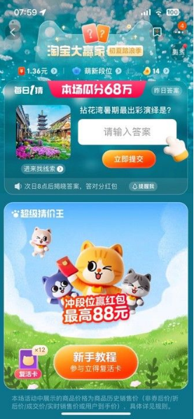 拈花湾暑期最出彩的演绎是?这个是6.30的问题,下面小编将为大家带来淘宝大赢家6.30的答案,帮助玩家顺利地赢取游戏奖励。可以去找到线索进行答题,让你轻松玩转,本文将为您提供有用的参考和建议。快去看看小编的答案吧。