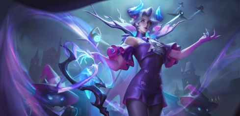 为了与米莱狄的魔女身份契合,形象的整体设计将神秘感强烈的紫色与代表魔法气质的蓝色相结合,魔杖则使用了树枝枝丫的元素来呼应故事发生地——黑森林,同时强化了森林魔女的魔幻感受。
