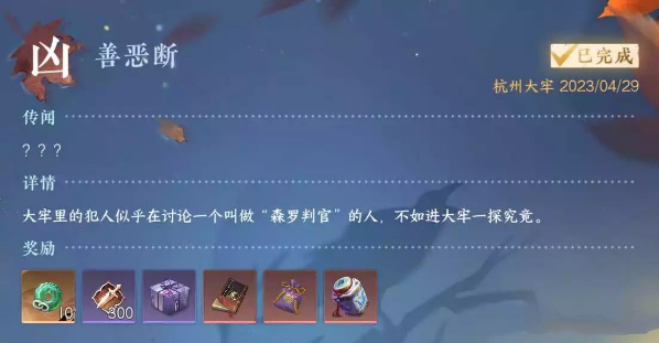 ①任务地点:杭州大牢(只有做坏事了被抓进去才能触发)。
