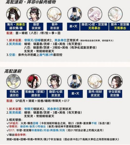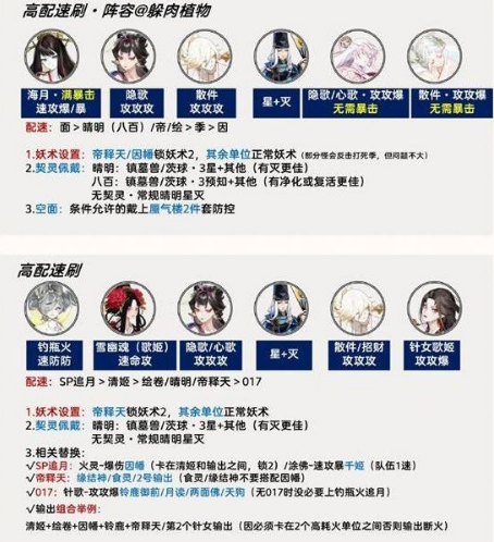 4.阴阳师百鬼逸闻协行阵容具体如下,有中低高配阵容,大家可以参考。