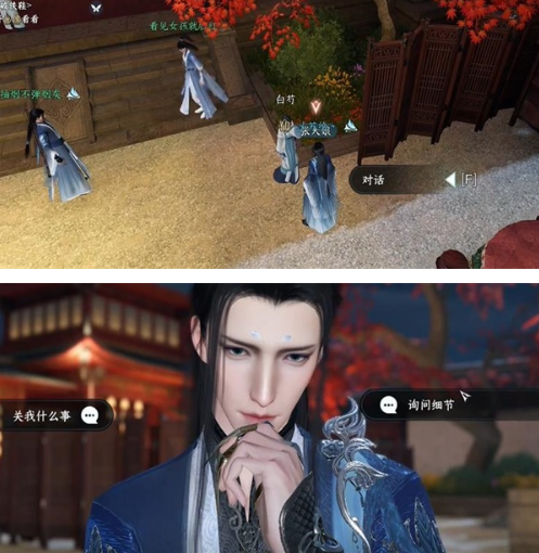 2、接着我们就在一边旁听他们的对话,然后我们加入他们的对话,在对话中我们选择【询问细节】。