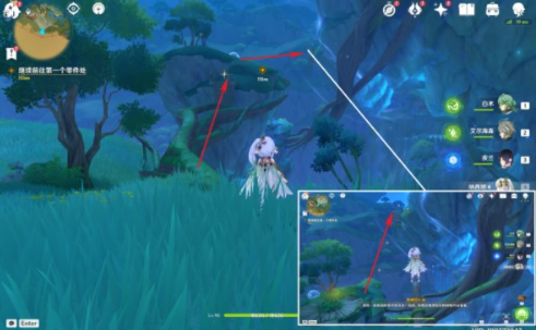 7、与众人对话后,我们跟着指引,一路向上走即可
