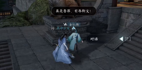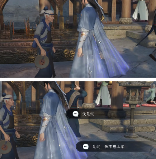 3、我们需要来到孔庙和金似颜的父亲来进行对话,这里对话我们选择【见过,他不想上学】;