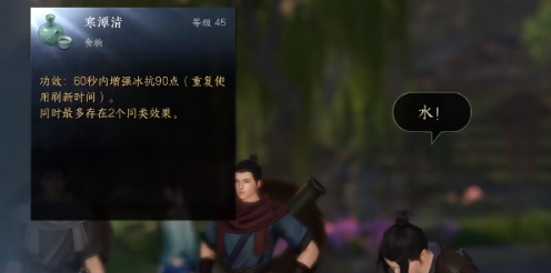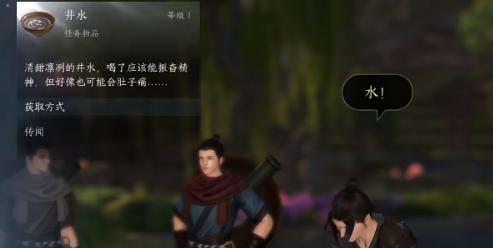 2、服用后我们会再次进入剧情对话,这次需要的是水,我们直接给他寒潭请(是不可以进行解渴的所以我们需要去打水);