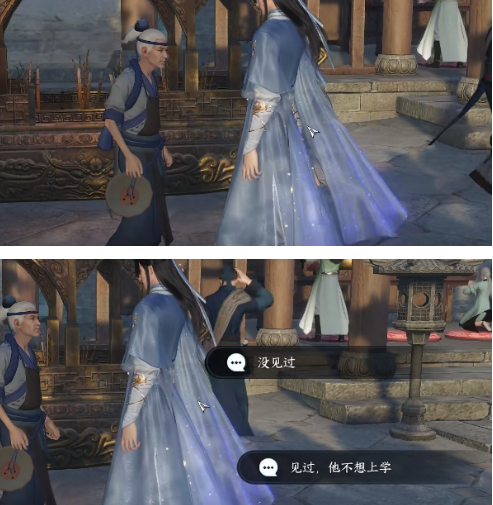3、我们需要来到孔庙和金似颜的父亲来进行对话,这里对话我们选择【见过,他不想上学】;