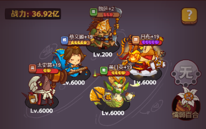 2、推荐阵容二:吕布、蔡文姬、貂蝉、太史慈、魏延。这套阵容适合6100关以后的华佗