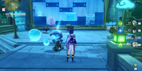 1、首先我们需要完成地图开图的前置4个任务之后,我们来到寄想者剧场,对应下图标记单位位置,我们可以看到一个小水珠,我们需要进行对话;