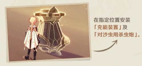 在指定位置安装「充能装置」及「对沙虫用杀虫炮」。