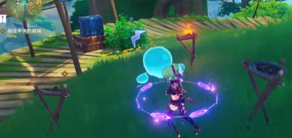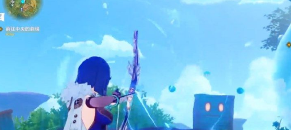 2、第一个水灵就在宝箱的左侧,在空中有三个史莱姆,我们使用弓箭射击,击中后就会出现第一个水灵;