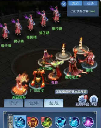 阵容推荐:观音-广目-蝎子精-孙婆婆-朱雀(也可以用火神女娲)