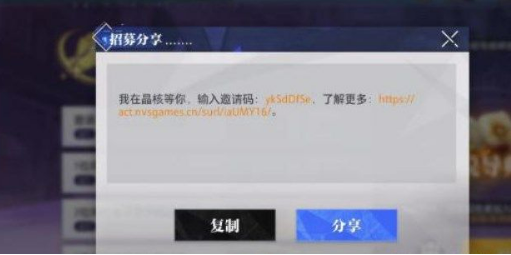 3、然后点击右下角的招募,就能获得自己专属的邀请码。