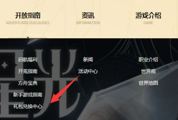1、用户可以直接点击上述兑换中心进入兑换页面,或者进入命运方舟官网,点击顶部栏目。