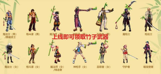 【2、竹子武器】。竹子武器装扮,每个职业设计不同,萝卜青菜各有所爱,个别职业挺好看的,比如暗夜使者、魔法师、圣职者等等。