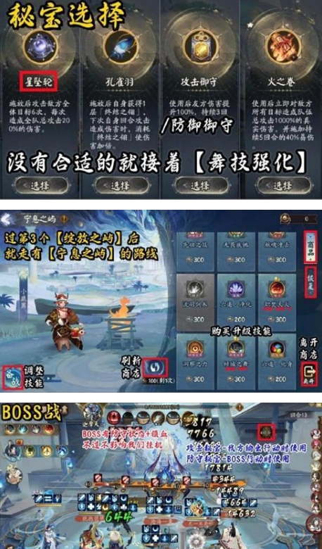 过程推荐技能,流羽剑术,倾城之舞,六道轰雷,没有这些技能就选,舞技强化,提高助战孔雀的伤害