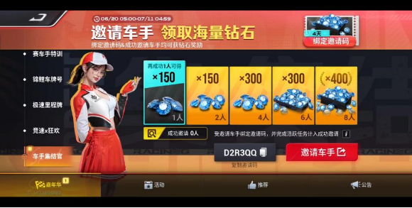 3.开服庆典极速嘉年华,除了极速里程碑都可以获得钻石!